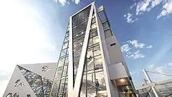 The outside sport fields include a five-a-side soccer field, basketball courts, handball courts, volleyball courts, tennis courts, badminton courts, and a stadium for over 2,500 people.[23]
