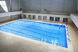 It's a multi-function sport hall. It can accommodate over 5,000 people. It has a Five-a-side soccer field, handball court, volleyball court, badminton court, basketball court, a squash court, in addition to a judo hall, a gym hall, a fitness hall, and a table tennis hall.[22]