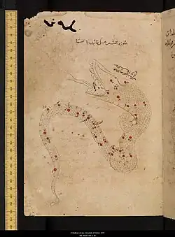 The first illustrated Arabic manuscript still preserved from the 11th century is Abd al-Rahman al-Sufi's Book of Fixed Stars, dated from around 1009 (Bodleian Library, Marsh144). This astronomy work was copied by the author's son himself, from models that already existed in the previous century. It is then necessary to wait until the end of the twelfth century to find a boom in miniatures in the Arab world.[45]