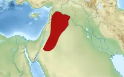 The Osroeni and Hatrans were part of several Arab groups or communities in upper Mesopotamia, which also included the Arabs of Adiabene which was an ancient kingdom in northern Mesopotamia, its chief city was Arbela (Arba-ilu), where Mar Uqba had a school, or the neighboring Hazzah, by which name the later Arabs also called Arbela.[205][206] This Arab presence in upper Mesopotamia was acknowledged by the Sasanians, who called the region Arbayistan, meaning "land of the Arabs", is first attested as a province in the Ka'ba-ye Zartosht inscription of the second Sasanian King of Kings, Shapur I (r. 240–270),[207] which was erected in c. 262.[208][86] The Emesene were a dynasty of Arab priest-kings that ruled the city of Emesa (modern-day Homs, Syria) in the Roman province of Syria from the 1st century CE to the 3rd century CE. The dynasty is notable for producing a number of high priests of the god El-Gabal, who were also influential in Roman politics and culture. The first ruler of the Emesene dynasty was Sampsiceramus I, who came to power in 64 CE. He was succeeded by his son, Iamblichus, who was followed by his own son, Sampsiceramus II. Under Sampsiceramus II, Emesa became a client kingdom of the Roman Empire, and the dynasty became more closely tied to Roman political and cultural traditions.[209]