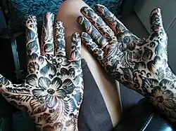 Arabs from Morocco to Iraq share a common bond based on ethnicity, language, culture, history, identity, ancestry, nationalism, geography, unity, and politics,[91] which give the region a distinct identity and distinguish it from other parts of the Muslim world.[92] They also have their own customs, literature, music, dance, media, food, clothing, society, sports, architecture, art and, mythology.[93] Arabs have significantly influenced and contributed to human progress in many fields, including science, technology, philosophy, ethics, literature, politics, business, art, music, comedy, theatre, cinema, architecture, food, medicine, and religion.[94] Before Islam, most Arabs followed polytheistic Semitic religion, while some tribes adopted Judaism or Christianity and a few individuals, known as the hanifs, followed a form of monotheism.[95] Currently, around 93% of Arabs are Muslims, while the rest are mainly Arab Christians, as well as Arab groups of Druze and Baháʼís.[96]