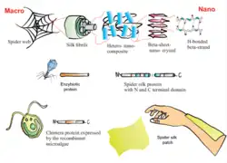 77. ^ Xia, X. X.; et al. (2010). "Native-sized recombinant spider silk protein produced in metabolically engineered Escherichia coli results in a strong fiber". Proceedings of the National Academy of Sciences of the United States of America. 107 (32): 14, 059–63. Bibcode:2010PNAS..10714059X. doi:10.1073/pnas.1003366107. PMC 2922564. PMID 20660779.