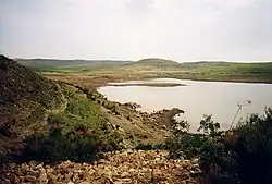The catchment of the reservoir is 12 square kilometres (4.6 sq mi) large, with a perimeter of 16 km (9.9 mi) and a length of 4,950 m (16,240 ft). The reservoir suffers from rapid siltation.[2] The lithology of the catchment is Antalo Limestone and Mekelle Dolerite.[1] Part of the water that could be used for irrigation is lost through seepage;[3] the positive side-effect is that this contributes to groundwater recharge.[4]