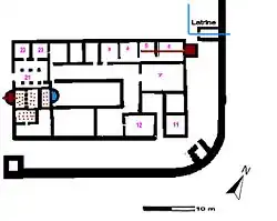 The later commanding officer’s house built after 300 resembled elegant 3rd and 4th century houses from the Mediterranean area and included an atrium at the entrance leading to a colonnaded courtyard with fountain around which most of the rooms were organised. Many of the rooms were decorated with frescoes. A private thermal baths suite included hypocausts for the heated rooms.
