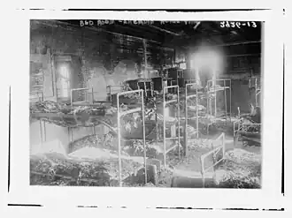 The Arcadia Hotel was located at 1202–1206 Washington Street. It was a five story brick building with a saloon occupying the first floor and the top four floors were used as a low-priced rooming house for men.[2] The hotel was part of the Lyons chain of lodging houses.[3] The building was owned by Moses H. Gulesian.[2] The sleeping areas on the second and third floors were divided by walls of match-board sheathing that fell three feet (0.91 m) short of the ceiling.[4] The fourth had sleeping areas similar to the lower two floors as well as bunk beds. The fifth floor was an open dormitory with bunk beds. According to the hotel register, 155 men were in the building that night.[3]