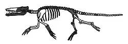 First identified as cetaceans by West 1980, the pakicetids, the most archaic of whales, had long, slender legs and a long, narrow tail, and could reach the size of a modern wolf. They have only been found in sediments from freshwater streams in northwestern India and northern Pakistan, and were probably waders rather than swimmers.[7]