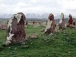 Karahunge is a megalithic collective stone circle dated between 7700 and 4000 years old and located 200 kilometers from the capital of Armenia, Yerevan. The observatory comprises many stones arranged in a circle with a few arms extending from it. Like many other stone-made sites, Karahunge was initially thought to be a religious-related architecture. In 1985, Prof. E.S. Parsamian firstly interpreted it as an astronomical monument. Metzamor is another ancient sky observatory in Armenia,[11] which was also firstly interpreted as an archaeoastronomical monument by Prof. E.S. Parsamian.[12][13]