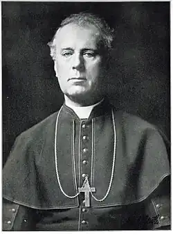 In 1906, the San Francisco earthquake caused $2 to $6 million in damages to over 12 churches and other institutions in the archdiocese.[19] Riordan celebrated open-air masses for his displaced parishioners, who were living amidst the ruins in temporary shelters, and assured them, "We shall rebuild."[20] Riordan temporarily moved in San Mateo, allowing the Presentation Sisters, who had lost their convent, to use the archbishop's residence.[21] Every church that had been destroyed had a temporary structure within two years and was rebuilt within another eight years.[21] By the time of Riordan's death in 1914, the archdiocese had 367 priests, 182 churches, 94 chapels and stations, and 94 parochial schools for 280,000 Catholics.[22] Many of the new parishes under his administration were established for immigrant communities.[20]