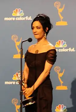 She provided the voices for several characters in the British children's television animation Postman Pat.[9] She lent her voice to the video game Dead Space: Extraction. Panjabi appeared on the BBC Four World Cinema Award show in February 2008, arguing the merits of five international hits such as The Lives of Others and Pan's Labyrinth with Jonathan Ross and Christopher Eccleston. In 2009, she portrayed an MI5 agent in the French movie Espion(s), and in the same year she joined the cast of the new CBS television series The Good Wife as Kalinda Sharma, for which she won a Primetime Emmy Award. Panjabi is the first actor of Indian descent to win an Emmy award.[10][11][12][13]