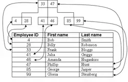 Btrieve uses a b-tree format to store record indexes on particular table columns. The index maps each set of indexed column values to the set of unique identifiers for the rows that have those column values, which provides a quick way to find the rows within a table using the indexed column. B-trees are tree data structures and are very efficient as a mechanism for fast data retrieval. The drawback of a btree is that data must be constantly balanced when it is inserted into the tree, therefore Btrieve only stores the record index as btree to reduce the amount of time it takes to insert and update records. A separate b-tree is kept for each index in the system, and the root node information is kept in the FCR. In Btrieve 6.x a new index can be created at file creation time, or added and dropped after the file is created. Index pages are also created as they are needed. Before Btrieve 6.0 existing key indexes could not be removed, though supplemental indexes could be created and dropped as needed.
