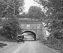 The community received its first name, Arch Hill, after an arched bridge was built over the present-day U.S. Route 9 in 1839. The bridge carried the Old Croton Aqueduct over the highway until 1924, when the bridge was deemed to be a traffic hazard and was demolished. The aqueduct was then rerouted to flow beneath the highway. In November 1998, long after the aqueduct was shut down, the bridge was replaced as a crossing for aqueduct walkers, bikers, and equestrians over the particularly dangerous section of the highway.[2] The new bridge connects the Rockefeller State Park Preserve with Rockwood Hall, and was built to resemble the two bridges over Route 117 which the Rockefellers had built.[3]