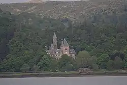 Valentine's new structure is on an heroic scale. At its height, construction employed 160 workers in 1888, and did much to improve local employment prospects at a time when agitation for land reform from the Highland Land League was at its height.[11] Valentine also bought the neighbouring Lochaline estate in 1880, adding another 9,000 acres (3,600 ha) including Morvern's largest settlement, Lochaline.[11] He died in 1906 on board his yacht Rannoch in Gourock Bay, having become something of a recluse in his old age. Latterly, he forbade trespassing on the estate and lived in fear of holidaymakers and tourists.[12]
