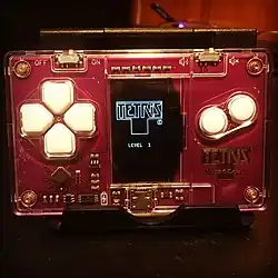 As well as the open-source Arduboy itself, a single-game version featuring an officially licensed (non-open) version of Tetris is also available.[14]