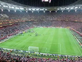 The stadium was inaugurated on 6 September 2011, with a UEFA Euro 2012 Group D qualifier match between Romania and France.[16] In the front of 49,137 fans, Romania and France drew 0–0. The result meant that Romania lost any chance of qualifying for the tournament, hosted by neighbours Ukraine and Poland.