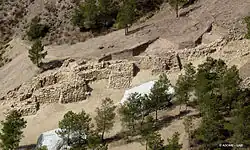 Pollen analysis in a peat deposit in the Cañada del Gitano basin high in the Sierra de Baza suggests that the Argaric exhausted precious natural resources, helping bring about its own ruin.[6] The deciduous oak forest that covered the region's slopes were burned off, leaving a tell-tale carbon layer, and replaced by the fire-tolerant, and fire-prone, Mediterranean scrub familiar under the names garrigue and maquis.[7][8]