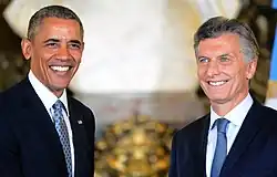 Argentine public opinion of the U.S. and its policies improved during the Obama administration, in 2010 was divided about evenly (42% to 41%) between those who approve or disapprove. As of 2015, Argentine views of the United States' policies are evenly divided with 43% of Argentines having a favorable view and 43% having an unfavorable view.[31]