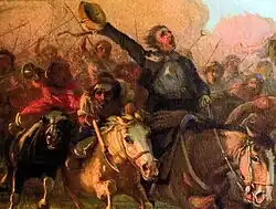 The Argentine War of Independence (Spanish: Guerra de Independencia Argentina) was a secessionist civil war (until 1816)[3][4][5][6] fought from 1810 to 1818 by Argentine patriotic forces under Manuel Belgrano, Juan José Castelli, Martin Miguel de Guemes and José de San Martín against royalist forces loyal to the Spanish crown. On July 9, 1816, an assembly met in San Miguel de Tucumán, declaring independence with provisions for a national constitution.