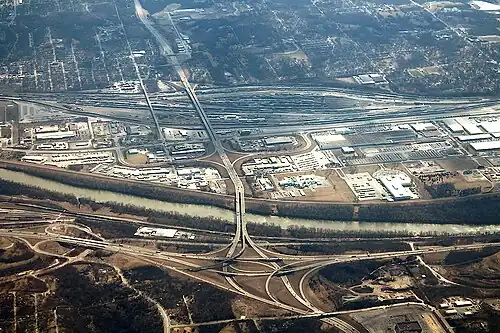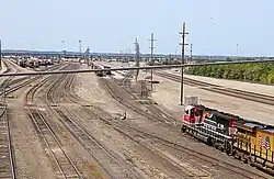 The Argentine Yard is one of several large rail yards in the Kansas City metropolitan area operated by BNSF, Union Pacific, Norfolk Southern and Kansas City Southern. For several decades, the Kansas City metropolitan area was considered the largest railroad hub in the U.S. in terms of freight volume, with over 300 freight trains entering or leaving the metropolitan region daily.[2] However, as of 2021, declines in network coal shipments have dropped Kansas City to second busiest and second by annual tonnage behind Chicago.[3]
