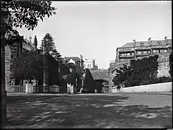 The Argyle Cut is a deep rock cutting giving a direct connection between Millers Point and The Rocks. It is covered by two bridges, the Cumberland Street bridge of c. 1911 and the Bradfield Highway c. 1930. On the wall of the Argyle Cut is an inscription that refers to the completion of the overhead bridges: completed 1867-1868, by Sydney Municipal Council, Charles Moore, mayor.[1]
