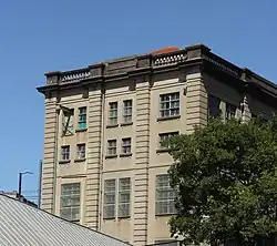 The Argyle Street substation, which includes the substation building, the switchhouse, transformers and surrounding electrical equipment - are all located in an area enclosed by steel mesh fencing on an escarpment above Trinity Avenue. The substation is a rendered brick, four-storey building constructed in the Inter-War Stripped Classical style and featuring steel windows with moulded and rendered sills and banded pilasters extending from ground level to a deep moulded cornice and parapet. It is accessible from the Harbour Bridge cycleway via a pair of timber doors with rendered architrave and pediment. The substation also features a double-tiered hipped roof.[2]