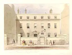 John Campbell, 2nd Duke of Argyll, known for his role in the Act of Union and the 1715 Jacobite Rising, acquired a property in 1706 and used it as his London residence along with Sudbrook Park to the west of the capital in Surrey. He expanded his landholding before later turning it over for development into a series of houses on the new Argyll Street and the adjoining Little Argyll Street. His younger brother Archibald built his own residence nearby, that subsequently became known as Argyll House. The designer of the house is unknown but James Gibbs, who helped on the development of the nearby Argyll Street for the family, may have assisted with the exterior of the building.[1] Archibald succeeded his brother and inherited the properties as third Duke in 1743.[2] It passed on to through subsequent dukes. The writer Lady Charlotte Bury, daughter of John Campbell, 5th Duke of Argyll, was born there in 1775.[3] Harriette Wilson, the mistress of the Sixth Duke, described it as a "dismal chateau".[1]