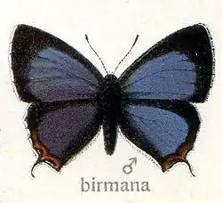 | Arhopala japonica is of unclear affiliations. When Narathura was considered distinct, it was placed there. | |