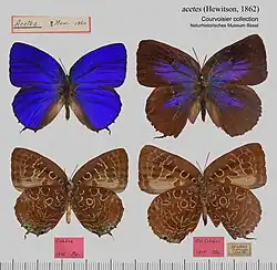 - ^ Savela, Markku. "Arhopala acetes (Hewitson, 1862)". Lepidoptera and Some Other Life Forms. Retrieved October 21, 2017.