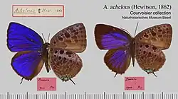 Arhopala achelous is a species of butterfly belonging to the lycaenid family that was described by William Chapman Hewitson in 1862. It is found in Southeast Asia (Peninsular Malaya, Singapore and Borneo).[2]