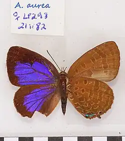 Arhopala aurea is a species of butterfly belonging to the lycaenid family described by William Chapman Hewitson in 1862.[2] It is found in Southeast Asia (Peninsular Malaya, Singapore and Sumatra).[3]