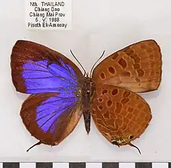- ^ Evans, W. H. (1957). "A revision of the Arhopala group of oriental lycaenidae (Lepidoptera: Rhopalocera)". Bulletin of the British Museum (Natural History) Entomology. 5 (3): 85–141.