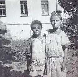 Scriabin's children were mostly raised by tutors, as both Scriabin and his wife were preoccupied with their public lives.[9] French was spoken within the family, which was frequently visited by poets, artists, theatre workers and philosophers.[10] Ariadna from an early age wrote poetry and studied at the Moscow Conservatory.[11] Julian showed talents as a composer, and Marina was trained as a painter. The house had a rich library, and the children received most lessons from private teachers and their mother.