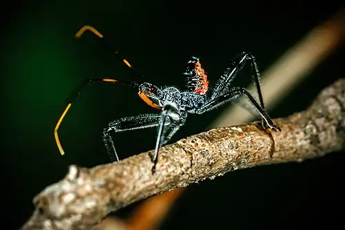 - ^ Fitzsimmons, Jay M.; Fitzsimmons, Lauren P. (2010). "Pre-copulatory behavior of the wheel bug Arilus gallus (Hemiptera: Reduviidae)". Entomological News. 121 (3): 304–307. doi:10.3157/021.121.0314. S2CID 86624882. Retrieved 2022-02-01.