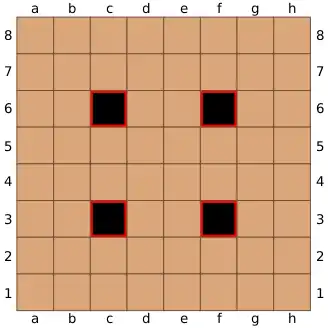 The second diagram, from the same game as the initial position above,[10] helps illustrate the remaining rules of movement.