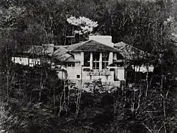 The commissioned house was designed and built in 1920, but the site near a hot spring left the building vulnerable to the cataclysmic 1923 Great Kantō earthquake which collapsed it.