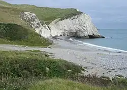 Arish Mell was the site of a series discharges pipes carrying effluent from the Winfrith Nuclear Power Station into the sea.