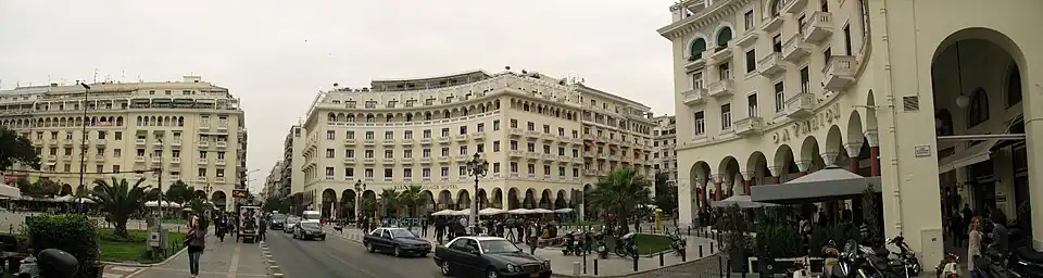 Aristotelous Square (Greek: Πλατεία Αριστοτέλους, IPA: [plaˈtia aristoˈtelus]), is the main city square of Thessaloniki, Greece, and is located on Nikis avenue (on the city's waterfront), in the city center. It was designed by French architect Ernest Hébrard in 1918, but most of the square was built in the 1950s. Many buildings surrounding the central square have since been renovated and its northern parts were largely restored in the 2000s.[1]