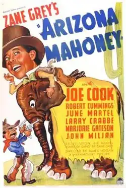 Arizona Mahoney is a 1936 American Western film directed by James P. Hogan and written by Stuart Anthony and Robert Yost. The film stars Joe Cook, Robert Cummings, June Martel, Buster Crabbe, Marjorie Gateson and John Miljan. It is based on the short story "Stairs of Sand" by Zane Grey. The film was released on December 4, 1936, by Paramount Pictures.[1][2][3]