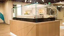 As part of a larger plan to renovate the temple, the original visitors' center was demolished in 2018. A new 18,000 square foot visitors' center and interactive Family History Discovery Center were built.[26][27][22] The new visitors’ center was dedicated by Ulisses Soares on August 12, 2021.[28] It is located in the northwest side of the Mesa Temple, in the corner of Main Street and Lesueur. It includes a children’s play area, with interactive activities; a hang out room for teens; a community section, with displays explaining the city's diverse history and spiritual heritage built by Native Americans, Hispanic migrants and Mormon pioneers. There is also a coloring wall, an interactive justserve.org screen to locate local community service opportunities, a 3D scale model of the temple, and a display where visitors learn more about God and Jesus Christ. Other areas include teaching rooms with videos and individual reflection pods.[29]