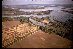 Two different eco-regions border the Grand Prairie along the major rivers forming the county's east and southern boundaries: the Arkansas River Holocene Meander Belt and the Western Lowlands Holocene Meanders. These areas of flat floodplain contain the meander belts of the present and past watercourses, point bars, natural levees, swales, and abandoned river channels. Some of the most extensive remaining tracts of native bottomland hardwood forest in the Mississippi Alluvial Plain remain along these rivers. Along the banks of the White River in Arkansas County, these forests are preserved in the White River National Wildlife Refuge.[16]