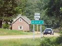 Highway 296 was created by the Arkansas State Highway Commission (ASHC) on April 24, 1963, by adopting a county road between US 67 at Mandeville and Hervey to the state highway system.[1] On February 22, 1967, the ASHC authorized the AHTD to prepare plans for construction of an interchange between I-30 and Sugar Hill Road in Texarkana.[4] On February 28, 1968, the ASHC extended Highway 296 to run between US 67 and I-30 as part of a program to connect newly built Interstate highways with the US highways they paralleled, despite the interchange requested to be studied in 1967 never coming to fruition.[5] The highway was extended west to US 59/US 71 and east to US 82 in accordance with Act 9 of 1973 by the Arkansas General Assembly on June 28, 1973.[6] The act directed county judges and legislators to designate up to 12 miles (19 km) of county roads as state highways in each county.[7]