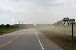 Highway 302 begins at Highway 86 in western Prairie County, a flat agricultural county in the Arkansas Delta. It runs due east as a section line road through agricultural fields, bridging Mitchell Branch and Mellon Branch and passing rural residences and outbuildings. Continuing east, the highway crosses an overflow branch of Barnes Creek before intersecting Highway 249. Highway 302 terminates at this junction, with Highway 249 continuing east and south.[3]
