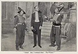 Originally produced in Brussels in October 1904 with music by Jane Vieu and a book and lyrics by Claude Roland and Louis Bouvet, it underwent considerable alteration for the British production resulting in only two of Vieu's songs remaining while the rest were specially written for the show by Ivor Novello and Guy Le Feuvre. The critic for The Stage commented that these changes reduced the piece from an operetta to a musical comedy.[3] The London production was directed by Austen Hurgon, and the musical director was Leonard Hornsey.[4] The play's opening night coincided with the worst of the German air raids on London during World War I, but the cast decided to continue with evening performances.[3] In 1936 the show was revised and retitled How Do, Princess?, with six new songs by Novello, but the subsequent tour of the British provinces was a financial disaster and quickly closed.[5] On 14 October 1937 a one-hour condensed version was broadcast on BBC Radio with Jean Colin as Arlette and Tommy Handley as Rono.[6]