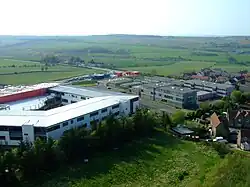 Aerial view of the new (under construction) and old school buildings in 2008. The old school has since been demolished. | |