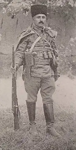 Armenakis Yekarian (Armenian: Արմենակ Եկարյան; 1870–1926) was an Armenian fedayee.[1] Yekarian was born in Van, Ottoman Empire. He joined the Armenian national liberation movement through the ranks of the Armenakans in 1888. His early education was at Varagavank monastery. In 1896, during the defense of Van, he obtaining weapons from Persia to organize self-defense in the city. He was imprisoned with 40 of his comrades and then released at the end of the conflict. Thereafter, he left the Ottoman Empire as required by the Sultan. He took refuge in Urmia in Persia. After the deposition of the Sultan by the Young Turk Revolution, he returned to Van in 1908. He joined the Van resistance in 1915. After the Armenian victory, they set up an Armenian provisional government, with Aram Manukian at its head. Armenak Yekarian became the police chief. Aram Manoukian, Armenak Yekarian and others tried to give a national-civil character to the exclusively militarized administration. In 1922, he emigrated with his family to Cairo, Egypt, where he died in 1926. His family moved to Soviet Armenia in 1947.