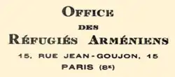 The delegation's activities ceased in 1925. A letter dated January 31, 1925, informed the Ministry of Foreign Affairs of its intention to conclude its mission. However, it proposed the formation of a Central Committee for Armenian Refugees in Paris, 56 rue du Faubourg Saint-Honoré, to assume responsibility for continuing its work.[66] The organization that succeeded was established as early as 1924 by Gabriel Noradounghian. It was initially known as the Bureau of Armenian Refugees[67][68] or the Office of Armenian Refugees[69] and was led by Archag Tchobanian, with Lévon Pachalian serving as secretary-general.[66] In conjunction with the Delegation of the Republic of Armenia, the former Armenian National Delegation assumed responsibility for managing Armenian refugees from 1924 to 1925. This role was subsequently confirmed by presidential decree in 1930.[70] As Anouche Kunth notes, this enables these two delegations to maintain their presence within the national administrative landscape.[70] According to her analysis, the dissolution of the Armenian National Delegation occurred in the wake of the general instruction of December 29, 1924, which removed Armenian nationality from the official list of nationalities. This was indicative of France's acknowledgment of the dissolution of the Armenian Republic.[66]
