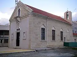 The church of Saint George [Սուրբ Գէորգ (Sourp Kevork)] is built in Vassilis Michaelides street near the city centre, on land donated circa 1935 by Satenig Soultanian, in memory of her father-in-law, Kevork. As the small Armenian community of Limassol could not afford to build a church, a theatre company was formed under Ardashes Bastadjian, giving performances in Nicosia, Larnaca and Limassol. Together with a contribution by the Armenian Prelature of Cyprus and Stepan Kavafian, the church was built between 1939 and 1940, while its consecration took place on 11 April 1948 by Bishop Ghevont Chebeyian. The church was renovated between 1975 and 1976, in 2007 and again in 2015, while in 1989 its bell was made electronic by donation of brothers Garabed and Nshan Arakchindjian. Liturgies are held every other Sunday, in turns with Saint Stephen's church in Larnaca. The church celebrates on the last Sunday of September, feast day of Saint George. The parish priest (as of 1992) is Fr. Mashdots Ashkarian. During the 1975–1976 renovation, the belltower was placed on top of the entrance, while an iron Armenian cross was added during the 2006 renovation, with the inscription in Armenian reading: