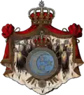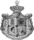 Insignia of the Gjonmarkaj (19th century) The Gjonmarkaj were, until April 7, 1939 and the advent of Communism, the rulers of Mirdita. Hailing from the Dukagjini clan, one of the oldest and most powerful families of Albanian nobility, their ancestral tree diverged into three main branches: Prenk Pasha, Lleshi i Zi and Prenk Markola. Being inherent custodians of the Kanun, they commanded respect primarily as arbiters and administrators of justice, rather than rulers in the traditional sense. Prenk Bib Doda, from the Prenk Pasha branch, served as Minister of Foreign Affairs in Turhan Përmeti's government. Unfortunately, he left no heir and with his passing, that branch of the Gjonmarkaj died out altogether. The lineage of Lleshi i Zi continued through Kapidan Marka Gjoni, the leader of Mirdita's self-government and his son Gjon Marka Gjoni. Major Prenk Gjonmarkaj, from Prenk Markola's branch, held the post of Deputy Minister of the Interior during the war. The family's heraldic achievement is depicted in the 1980 monograph titled "La casa dei Gjomarkaj", published in Palermo by Maria Greco.[51]