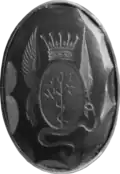 Coat of arms of the Gropa (1680) The Gropa were a noble Albanian family who ruled over the eastern shore of Lake Ochrida as early as the 13th century. In recognition of the services rendered, Sevasto Paulo Gropa was granted dominion over several lands by Charles I of Anjou through a royal decree, dated May 18, 1273. Encompassing parts of the Ebu Valley, they included the villages of Radicis, Cobocheste, Zuadigorize, Sirclani and Crave Zessizane.[14] Grand Zupan Andrea Gropa assumed control of Ochrida following the decline of the Prilep Lordship in 1371. Under his rule, the region remained an independent domain until 1380, when Karl Thopia, another prominent Albanian lord, took over governance. Zaccaria Gropa distinguished himself as a commander in several battles against the Turks and was head of the colony that migrated to Sicilia in 1465.[15] The coat of arms of the Gropa lineage is depicted in the 1680 catalogue "La Universita delle Insegne Ligustiche Delineate da Gio Andrea Musso" (p. 13)