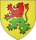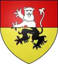 Gules, two lions passant or (armed and langued azure).[1] |