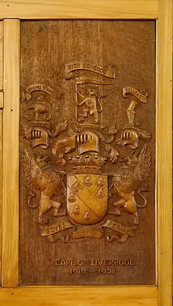 - ^ Dame Silvia Cartwright declined to seek armorial bearings. Her carved panel instead depicts her honours: the collar of the New Zealand Order of Merit, insignia of the Principal Companion of the Queen's Service Order and insignia of a Dame Commander of the Order of the British Empire.[4]